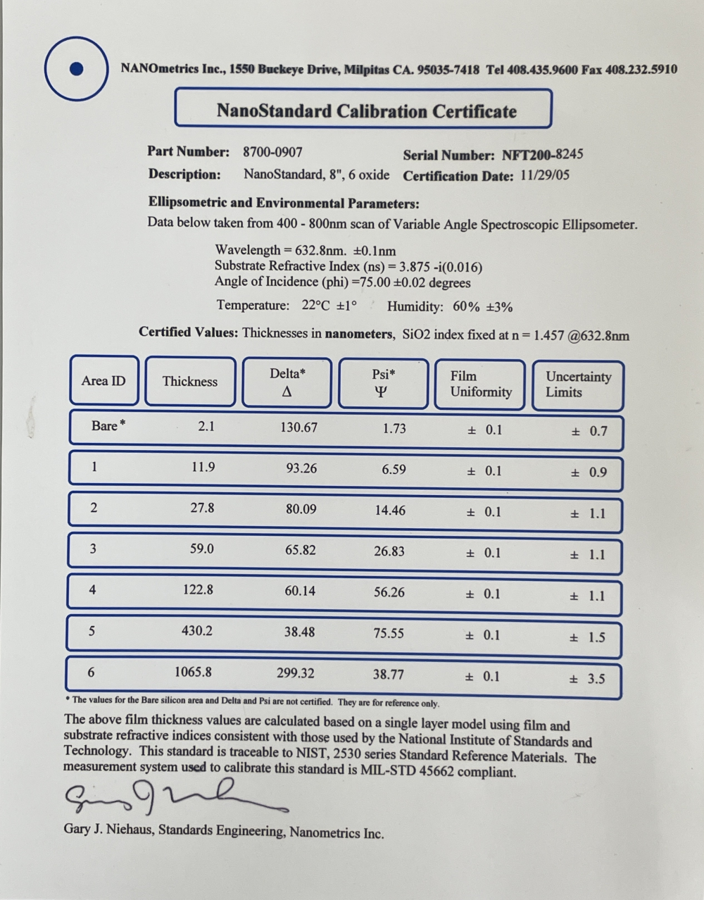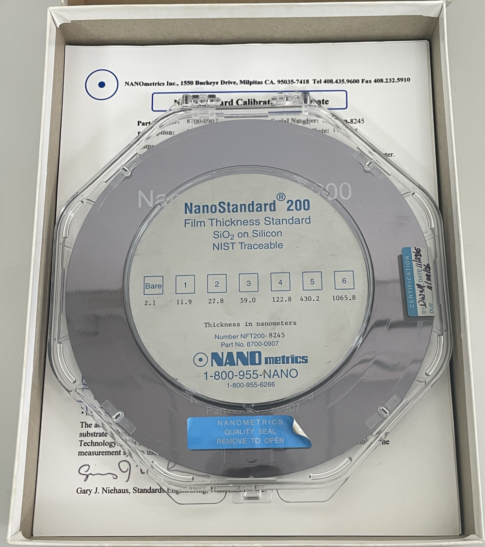 Nano Standard Wafer contains 7 pads thickness covering bare to 10K thickness.